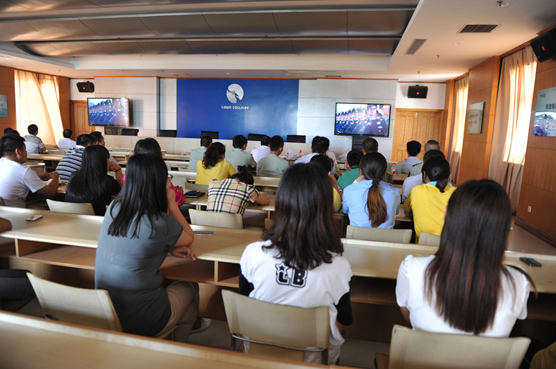 9月3日上午9时,鹿洼煤矿组织全体值班的干部职工观看抗日战争暨抗日战争反法西斯战争胜利70周年大阅兵。