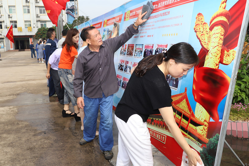 活动现场,党员、入党积极分子在党支部书记的带领下积极响应号召,自带抹布、水桶等卫生工具,以饱满的热情投身到矿区卫生清理整治活动中。大家各司其职,通力合作,充分发挥不怕脏、不怕累的精神,按照各自的志愿服务责任区,认真清理矿区内外各类牌板及道路卫生,清洗垃圾箱。经过一个多小时的共同努力,彻底清除了牌板上的积尘、污迹及卫生死角,营造了整洁优美的矿区环境。