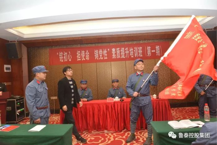 汤保民带领全体学员面对班旗,举起右手,庄严宣誓:“学习革命先烈,继承先辈遗志,发扬光荣传统。坚定执着追理想、实事求是闯新路、艰苦奋斗攻难关、依靠群众求胜利。清正廉洁自律,自觉无私奉献,为全面建成小康社会,实现伟大的‘中国梦’而努力奋斗!”