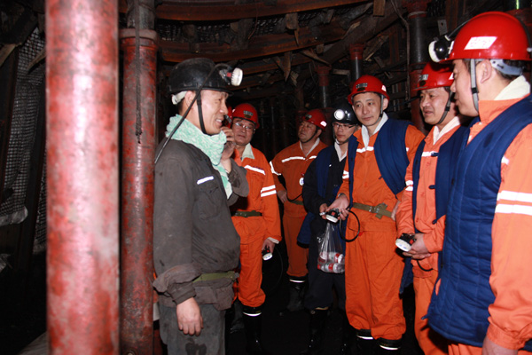 矿长刘岭、生产副矿长刘炳法、机电副矿长任广华等矿领导陪同下井检查。