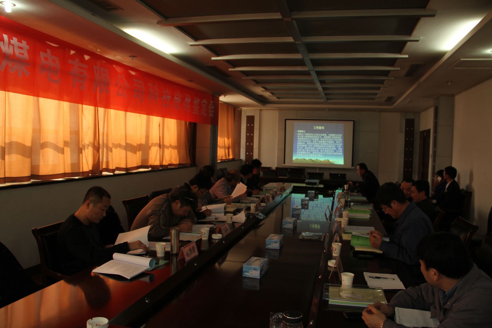 经过公司生产技术部一个多月的精心准备,2014年12月6日下午13时,在金威煤电公司办公楼二楼会议室成功召开了济宁金威煤电有限公司2014年科技成果鉴定会,对金威煤电公司引进吸收再创新的"新型活性涂层扩张阴极技术的研究与应用"、"含汞废水处理及其综合利用技术研究"、"循环流化床锅炉烟气喷氨脱硝技术的研究与应用"、"循环流化床炉内钙法脱硫技术研究与应用"等四项科技项目进行了成果鉴定。